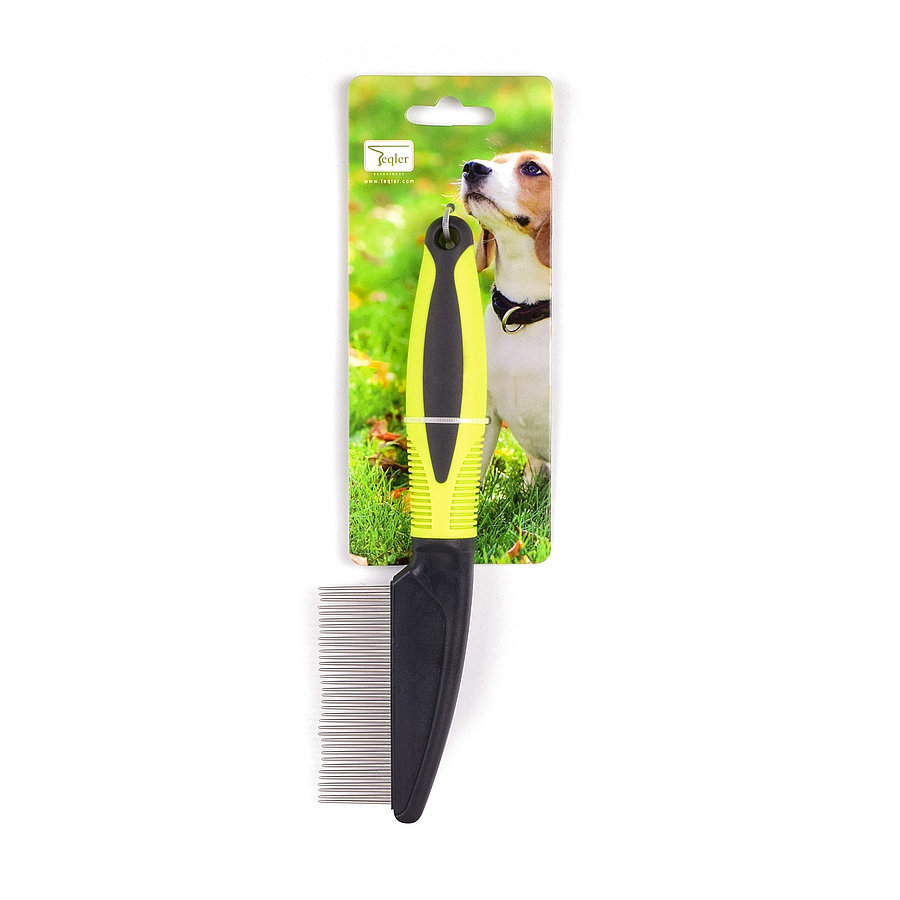 The movable wide-meshed teeth ensure that the comb detangles both short and long fur. The extra-long metal teeth are rounded and thus glide very gently through all types of fur. The Care comb reliably tackles even persistent knots to be found in the undercoat. The rubber, ribbed and ergonomically shaped handle is also very comfortable to hold.