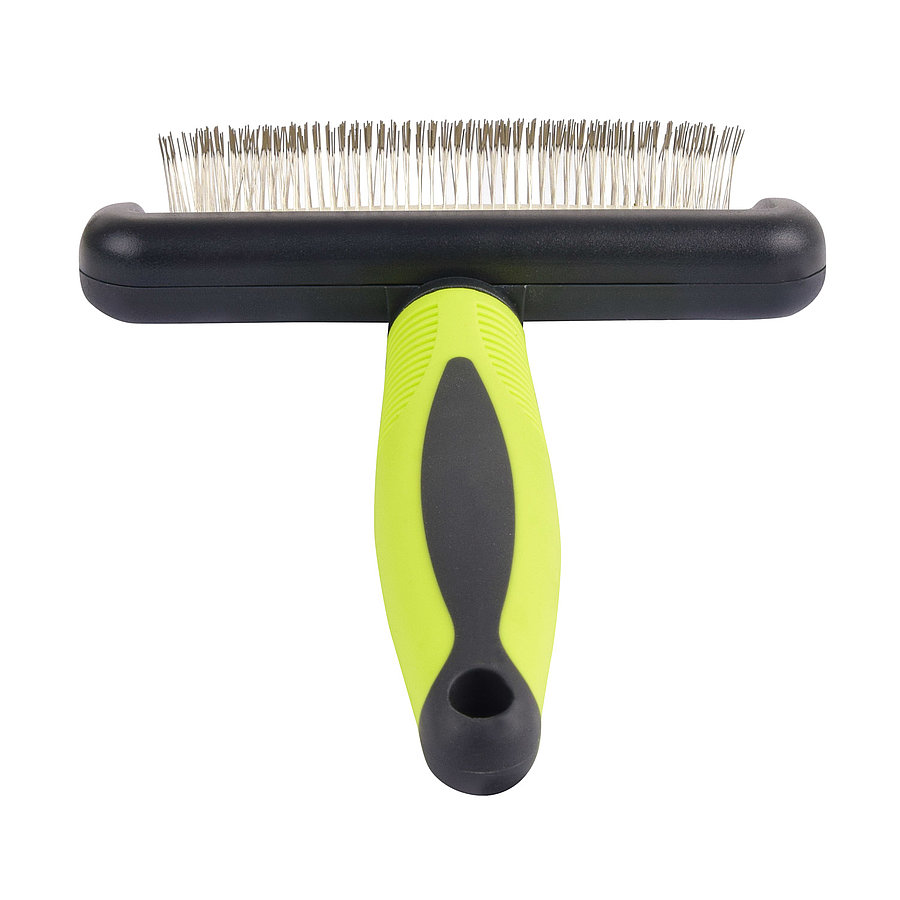 - Brush with silicone grip to remove loose hair, tangles and dirt